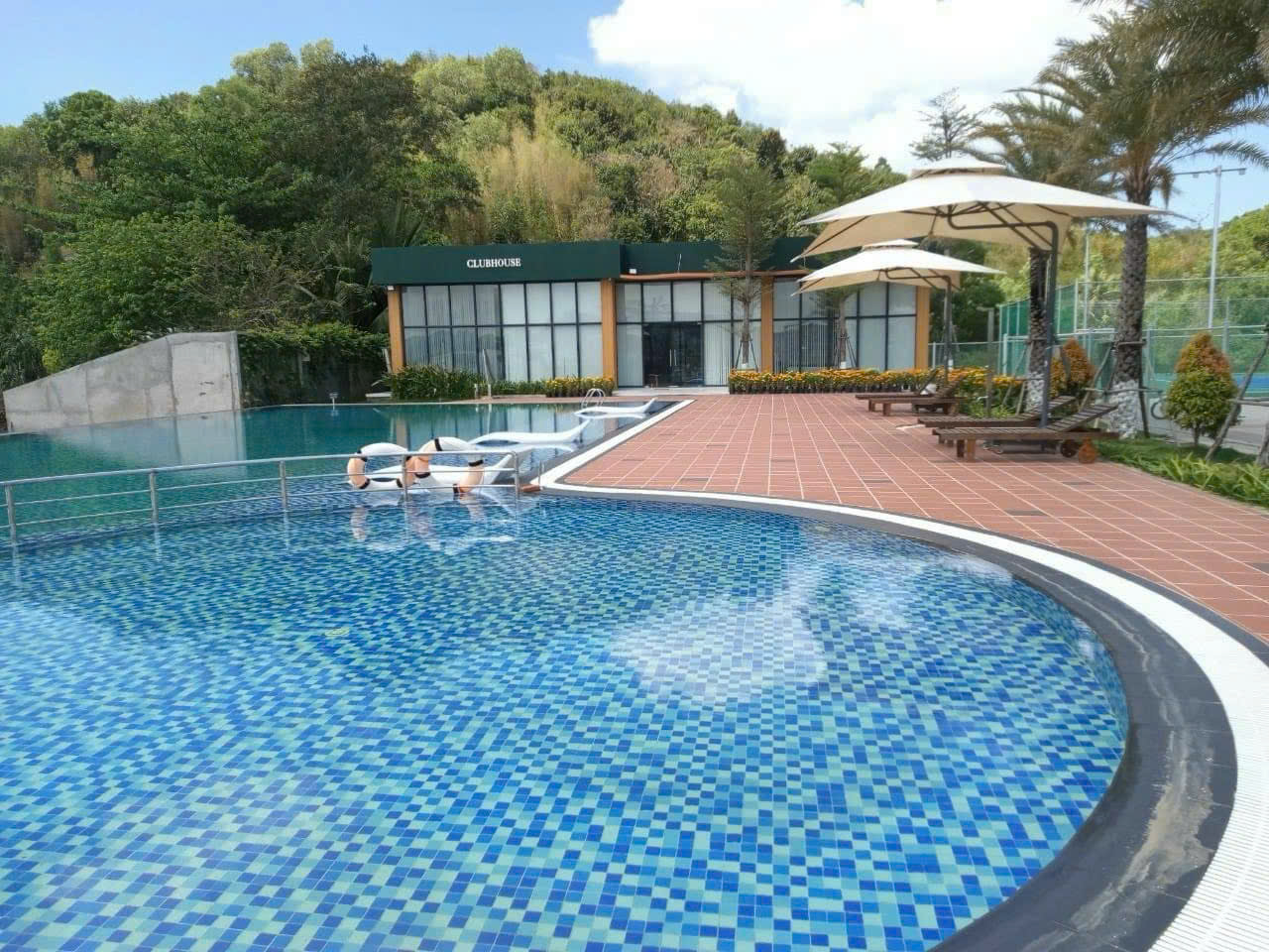 Giữa không gian thanh bình của khách sạn, hồ bơi ngoài trời được xem là điểm nhấn thu hút mọi ánh nhìn. Nước xanh trong phản chiếu ánh trời, tạo nên khung cảnh vừa thư giãn, vừa thơ mộng.