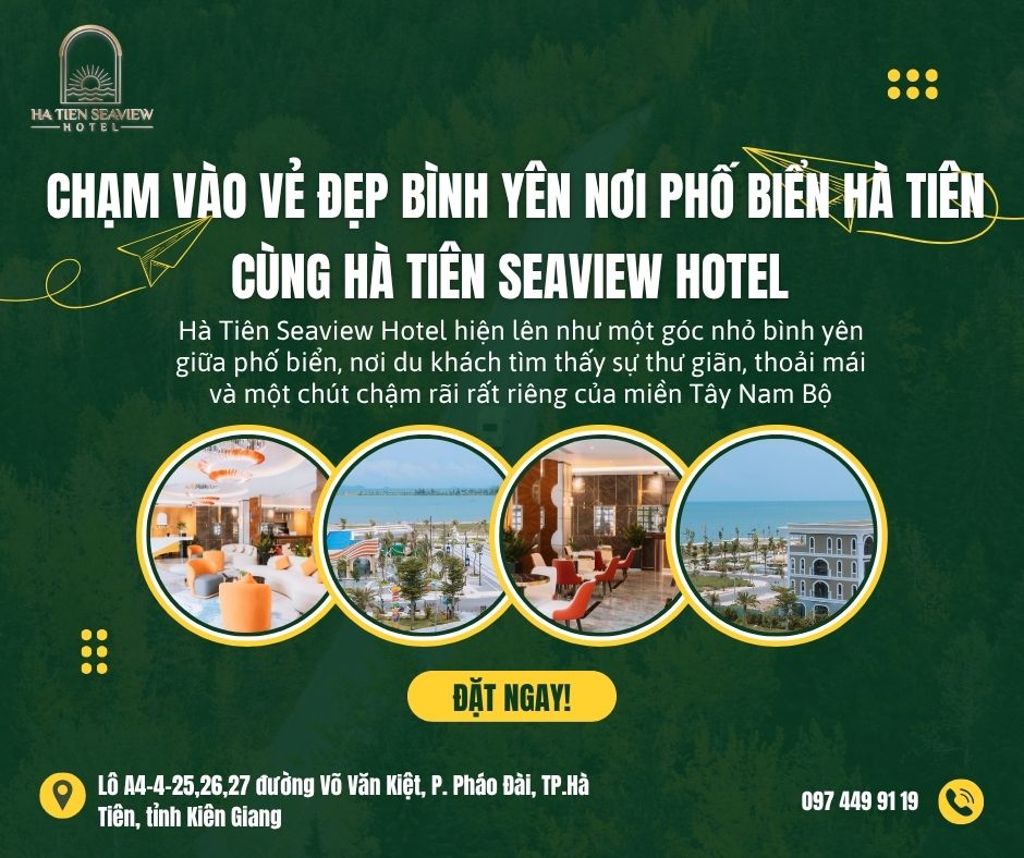 Hà Tiên Seaview Hotel không chỉ là một khách sạn Hà Tiên tiện nghi, mà còn là nơi để nghỉ ngơi, cảm nhận và yêu thêm vùng đất này. Giữa nhịp sống vội vã, đôi khi ta cần một nơi như thế – nơi mà mỗi buổi sáng bạn có thể nghe tiếng sóng vỗ, hít thở gió biển, và để tâm hồn mình chậm lại đôi chút.