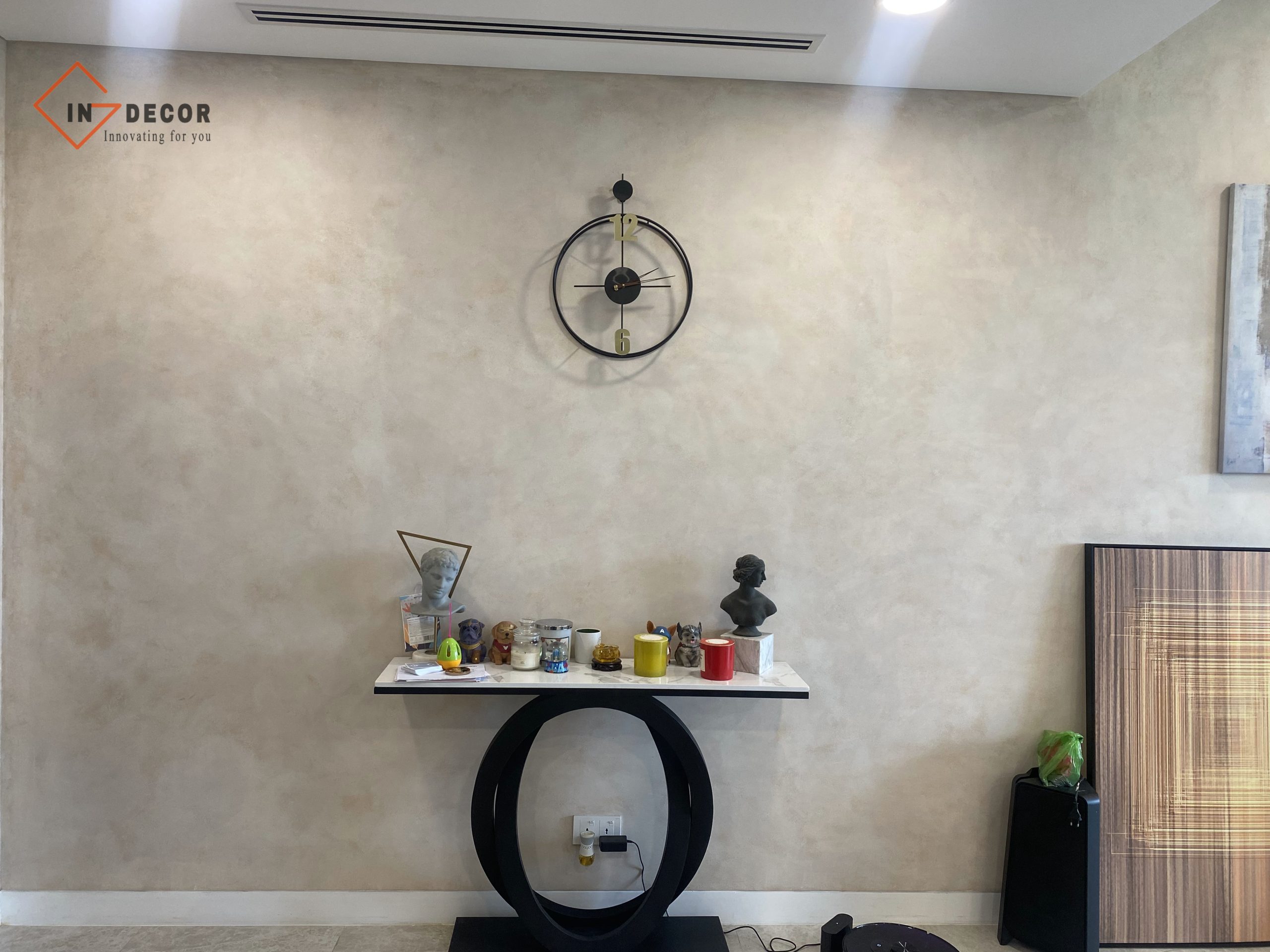 Thi công lớp nền và lớp hiệu ứng: Các lớp sơn được thi công theo kỹ thuật riêng, đảm bảo tạo hiệu ứng tự nhiên và đồng nhất. Gindecor chú trọng từng đường bay của cọ, từng thao tác loang màu để đạt độ chân thực cao nhất.
