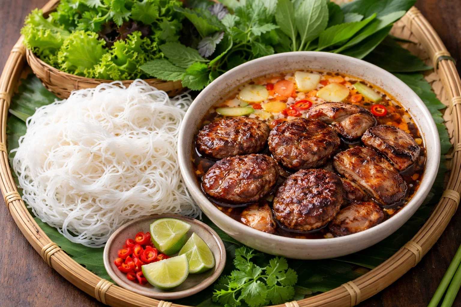 Originating from Hanoi, Bun Cha features grilled pork served with vermicelli noodles and dipping sauce.
